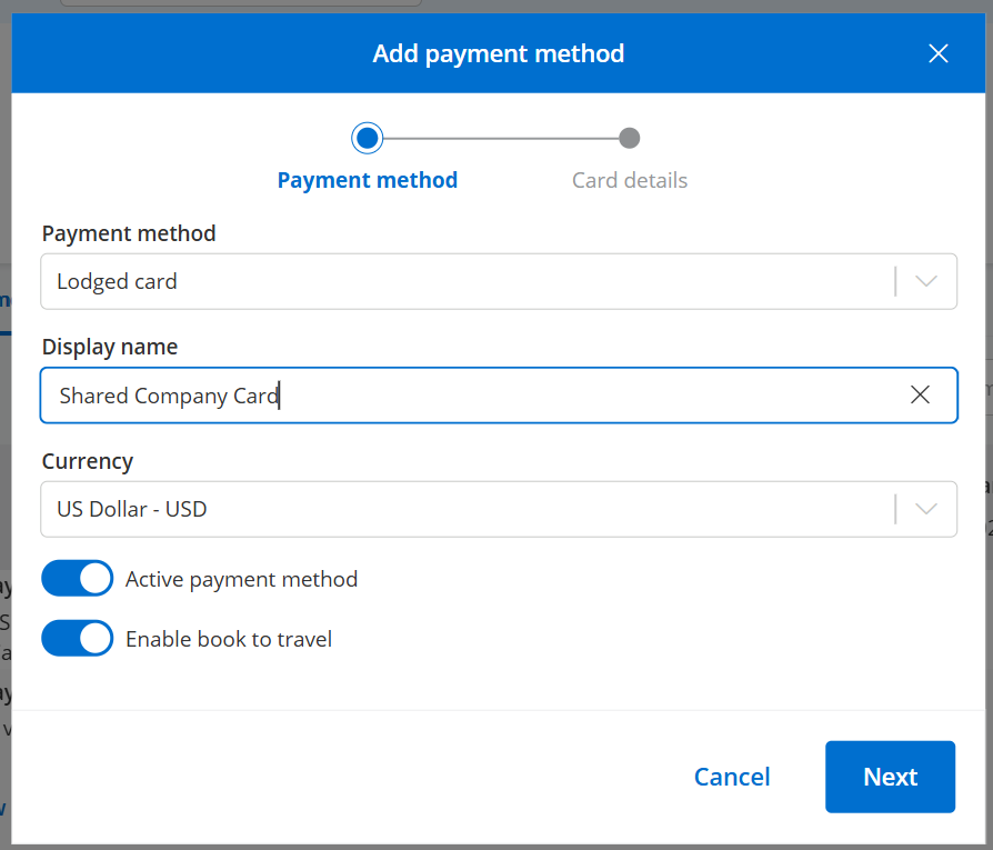 In this article, we will cover how to load a company level payment card and assign access to this card to users across the business. When this is done, you can manage a single, or multiple, shared card(s) to pay for all airfare, train, and pre-pay hotel bookings. It can also be used to guarantee post-pay hotel rooms and rental cars - however, please note that final payment for these travel types is taken at time of reservation by the vendor. See this article for more information.