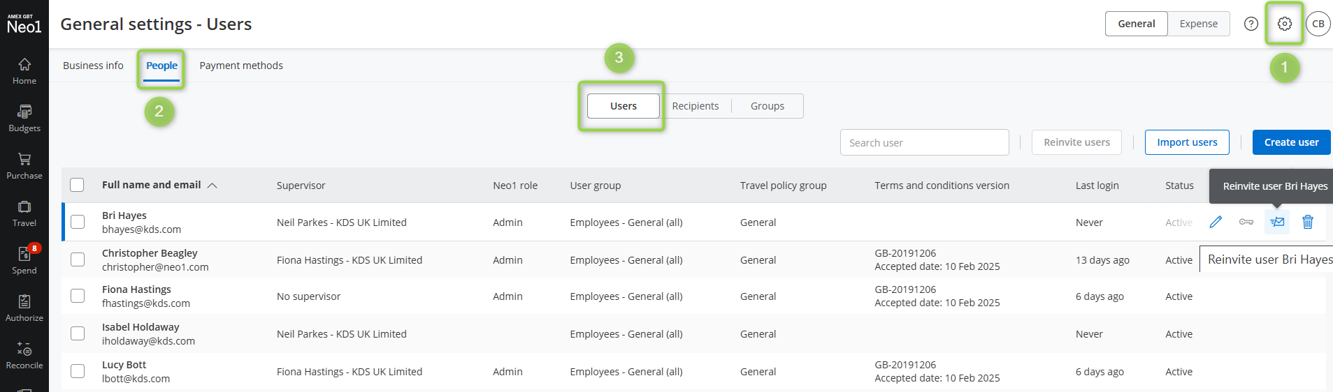 Step 1: As an Admin, click Settings > People management and you will land on the users tab by default.