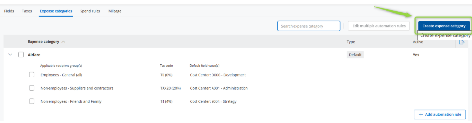 Step 3: Now that the new expense category is saved, you can manage the automation rule by clicking Add automation rule. See Manage expense category automation rules for details.