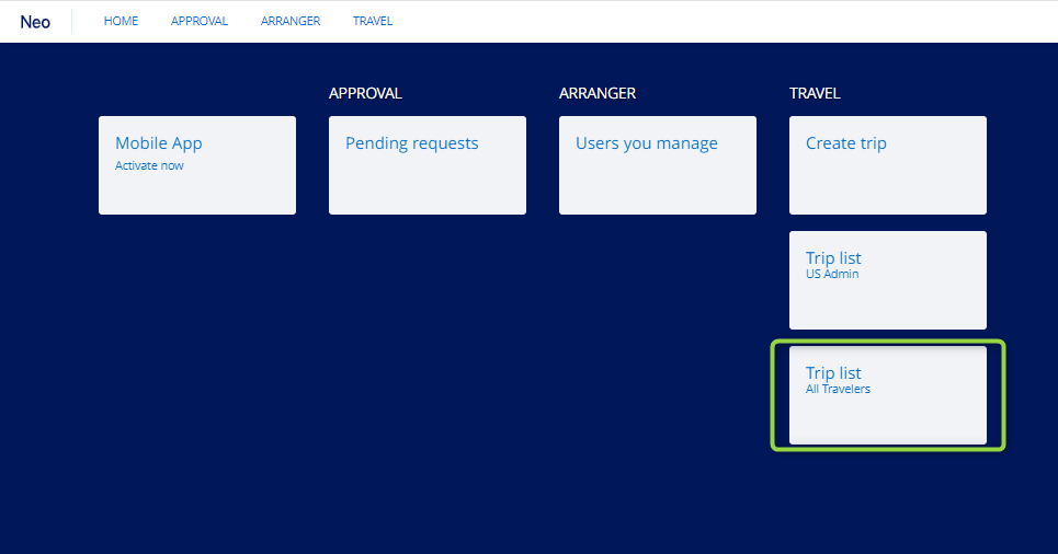 Step 2: Once you are logged in to the booking tool click on 'Trip list - All travelers'